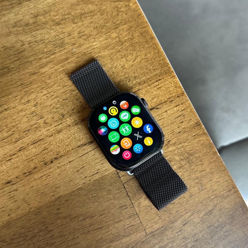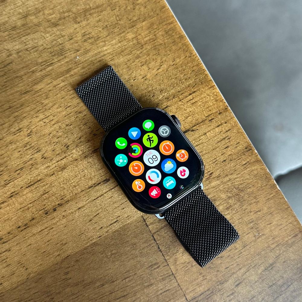 - ساعة ذكية Series10 شاشة أموليد ذاكرة داخلية 1 جيجا بايت لتحميل الموسيقى على الساعة شحن لاسلكي 3 أزواج من الاساور تسجيل صوتي وشاتGBT.